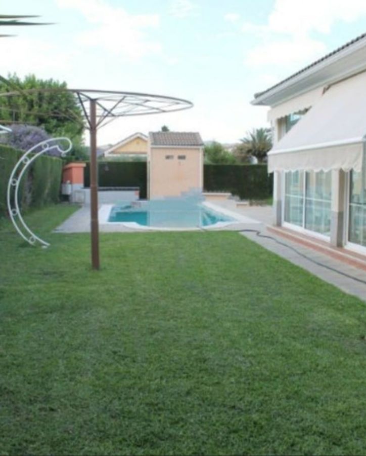 En el exterior tenemos todo asfaltado y césped natural con riego automático, una fantástica piscina con depuradora, zona de barbacoa y un baño exterior, trastero con todas las herramientas( desbrozadora, cortad césped, barredora... ) , 2 cocheras cerradas y cancela automática.